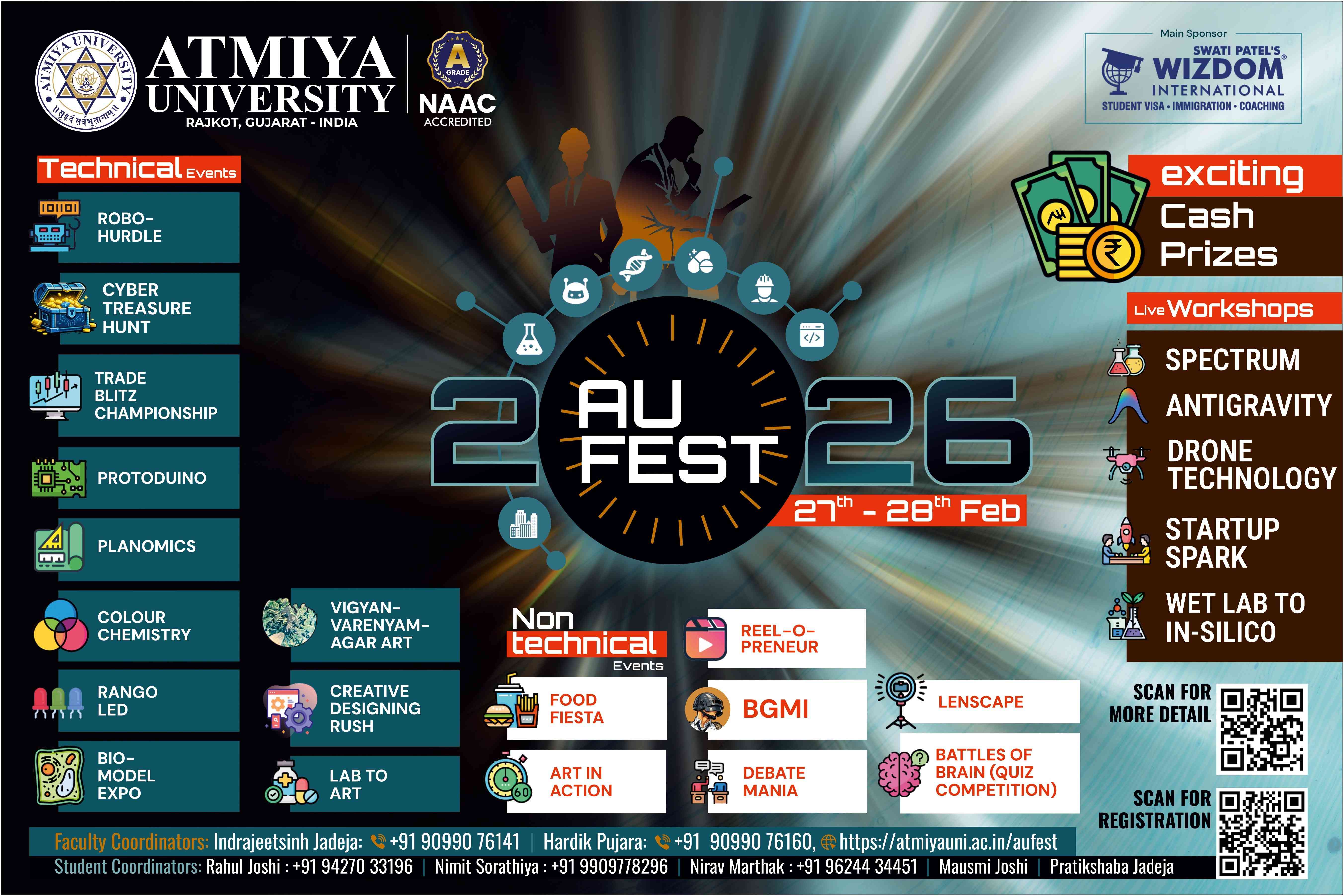 Reelopreneur focuses on the growing relevance of reels and short videos in business marketing and brand storytelling. In Round One, participating teams are required to create and submit a promotional reel. (Theme : Atmiya University’s AU Fest 2026). Shortlisted teams will perform on surprise tasks in Round Two